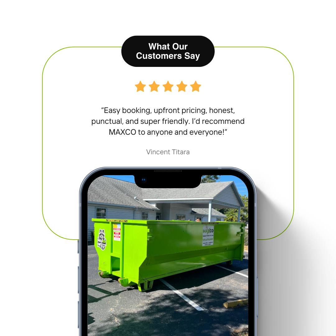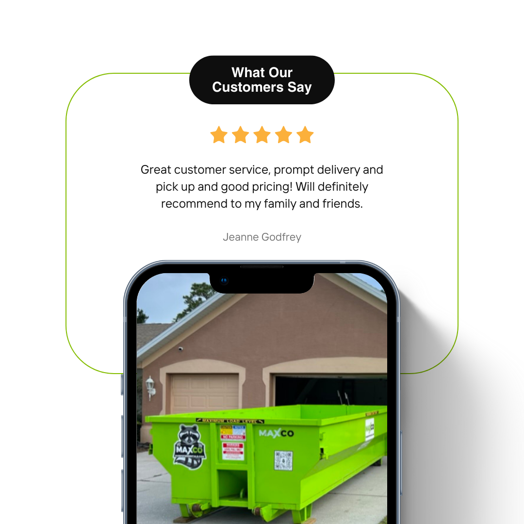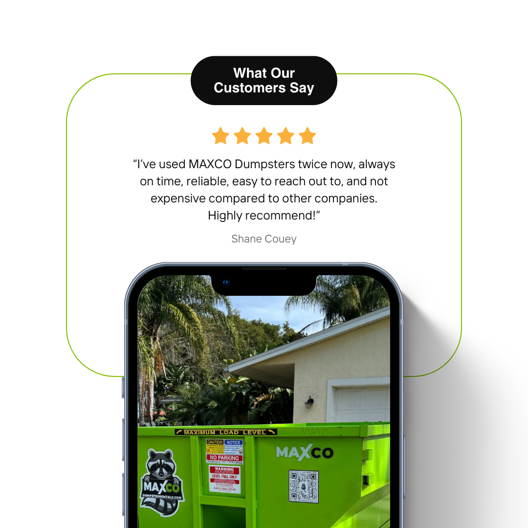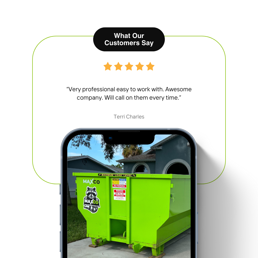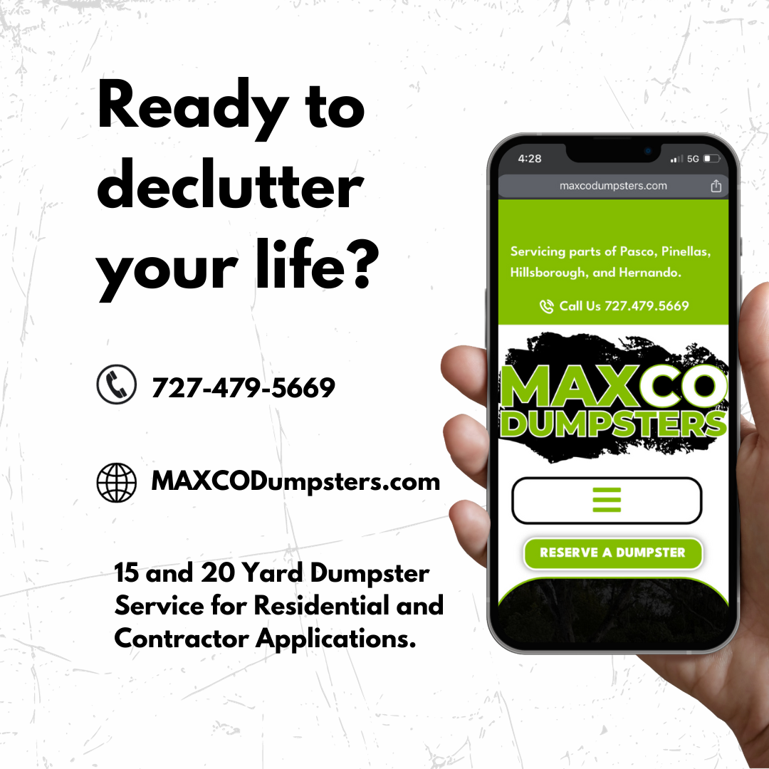 We aim to provide you with the best possible experience as a dumpster service provider. Our highly customizable process and the tools we offer are designed to make your project easier. If you have a property in Pasco, Pinellas, Hillsborough, or Hernando and need a dumpster delivered, MAXCO Dumpsters is the place to call.