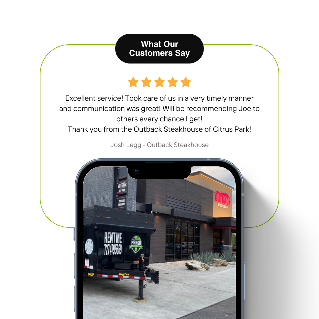 We offer both Roll-Off Dumpsters and Dump Trailers, each with its own advantages depending on your needs. If you have any questions or concerns about your specific project, please call us at 727.479.5669 or email us at MAXCODumpsters@gmail.com.